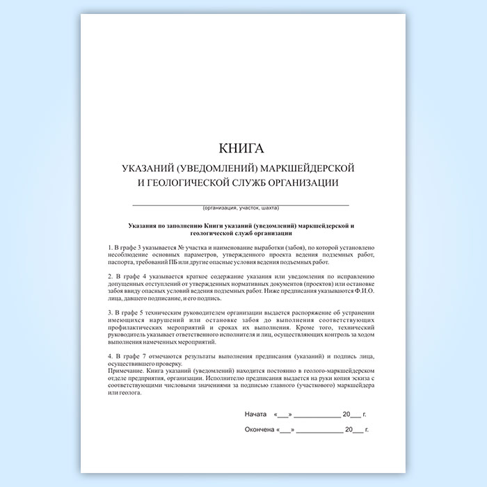 Книга указаний (уведомлений) маркшейдерской и геологической служб организации в Кызыле купить