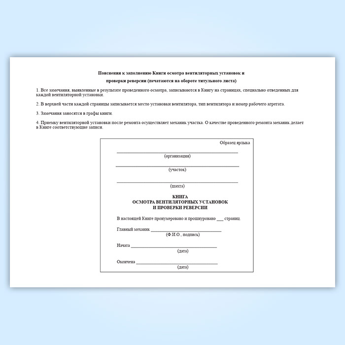 Книга осмотра вентиляторных установок и проверки реверсии в Кызыле купить