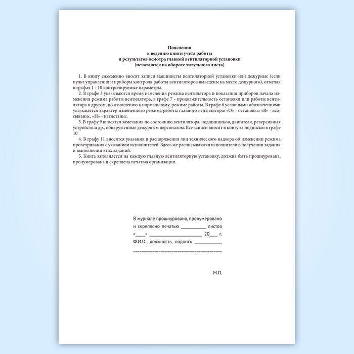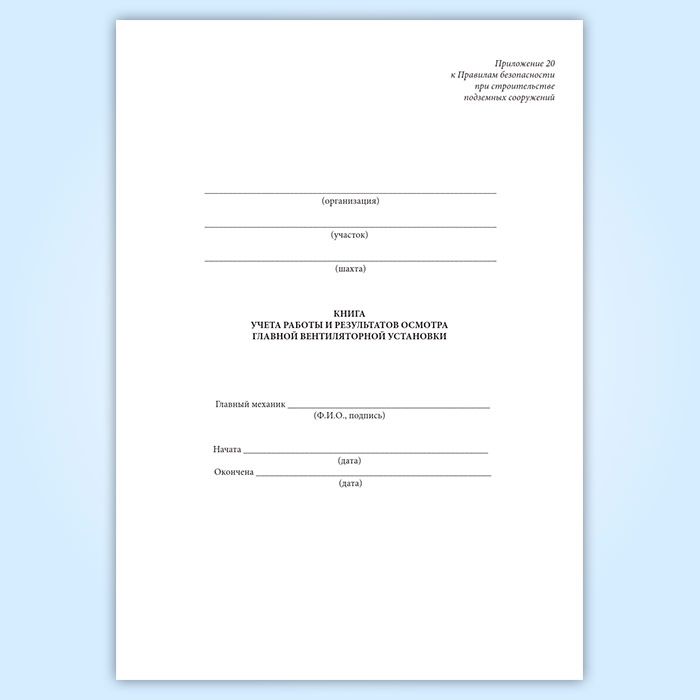 Книга учета работы и результатов осмотра главной вентиляторной установки в Кызыле купить