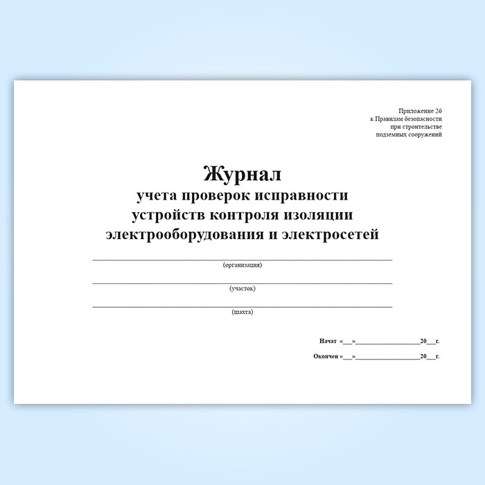 Журнал учета проверок исправности устройств контроля изоляции электрооборудования и электросетей в Кызыле купить