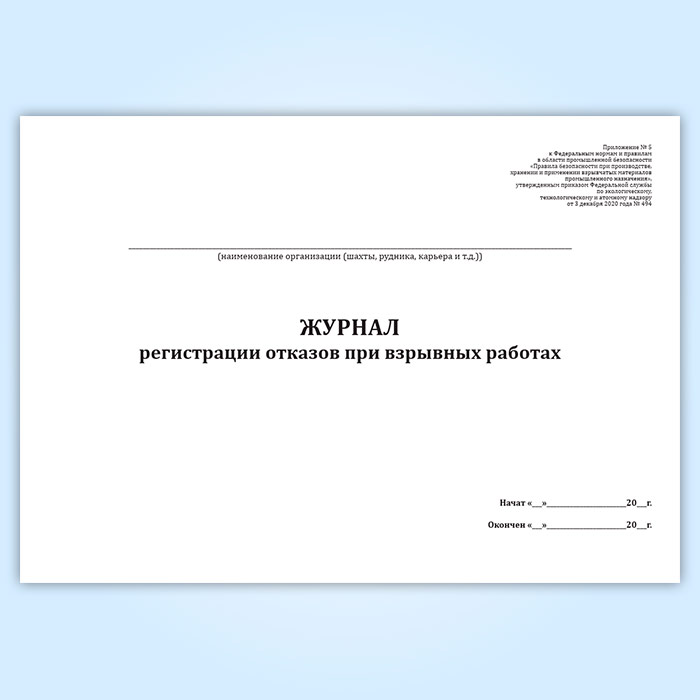 Журнал регистрации отказов при взрывных работах в Кызыле купить