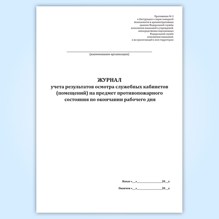 Журнал учета результатов осмотра служебных кабинетов (помещений) на предмет противопожарного состояния по окончании рабочего дня в Кызыле купить