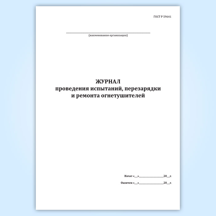 Журнал проведения испытаний, перезарядки и ремонта огнетушителей (ГОСТ 59641-2021) в Кызыле купить
