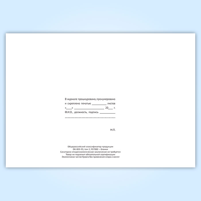 Вы получаете печатную продукцию прошнурованной и c местом для вашей печати в соответствии с действующими нормативными документами: