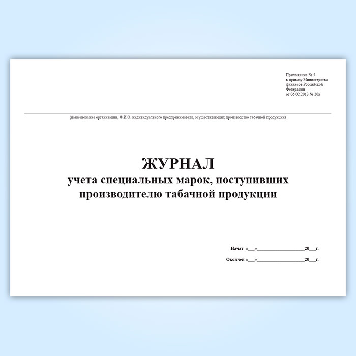 Журнал учета специальных марок, поступивших производителю табачной продукции в Кызыле купить