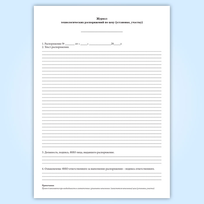 Журнал технологических распоряжений по цеху (установке, участку) в Кызыле купить