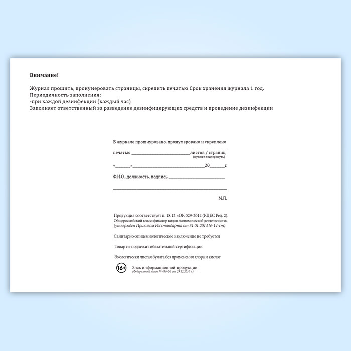 Журнал учета дезинфекций поверхностей в рамках профилактики распространения коронавирусной инфекции COVID-19 в Кызыле купить