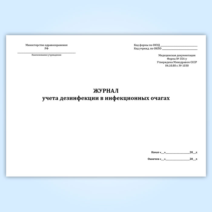 Журнал учета дезинфекции в инфекционных очагах (форма 354/у) в Кызыле купить