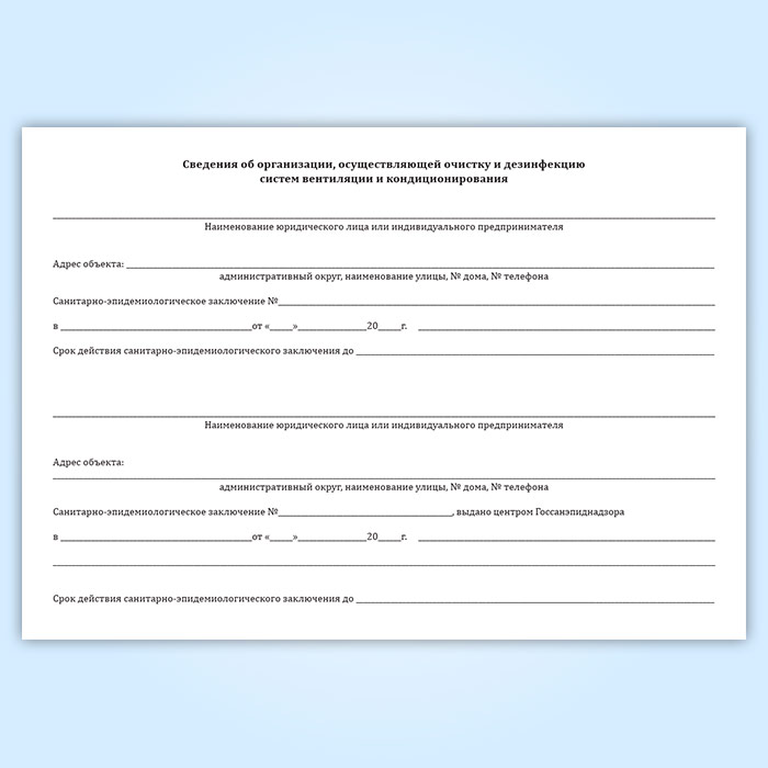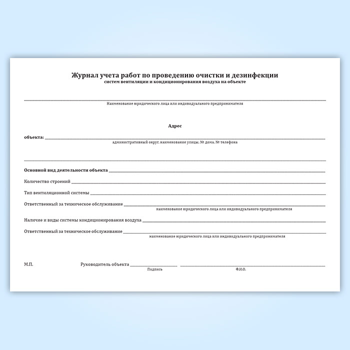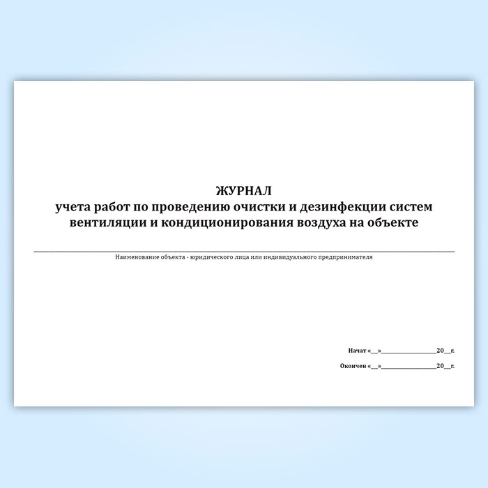 Журнал учета работ по проведению очистки и дезинфекции систем вентиляции и кондиционирования воздуха на объекте в Кызыле купить