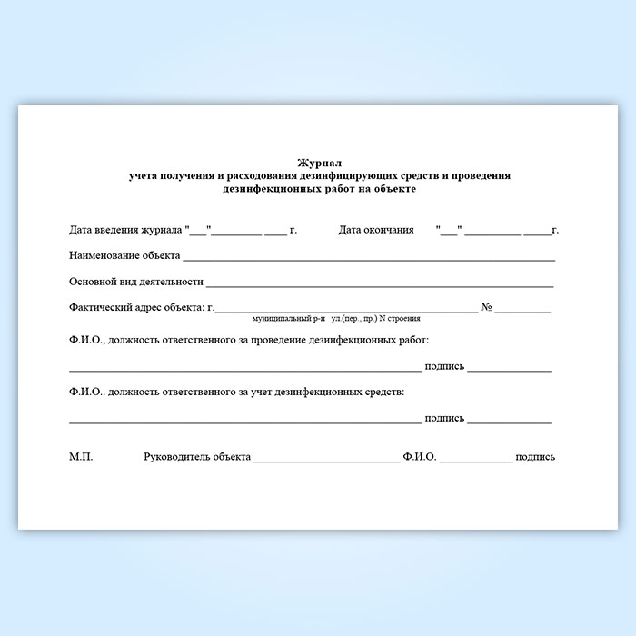 Журнал учета получения и расходования дезинфицирующих средств и проведения дезинфекционных работ на объекте в Кызыле купить
