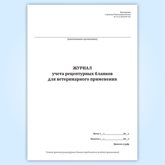 Журнал учета рецептурных бланков для ветеринарного применения в Кызыле купить