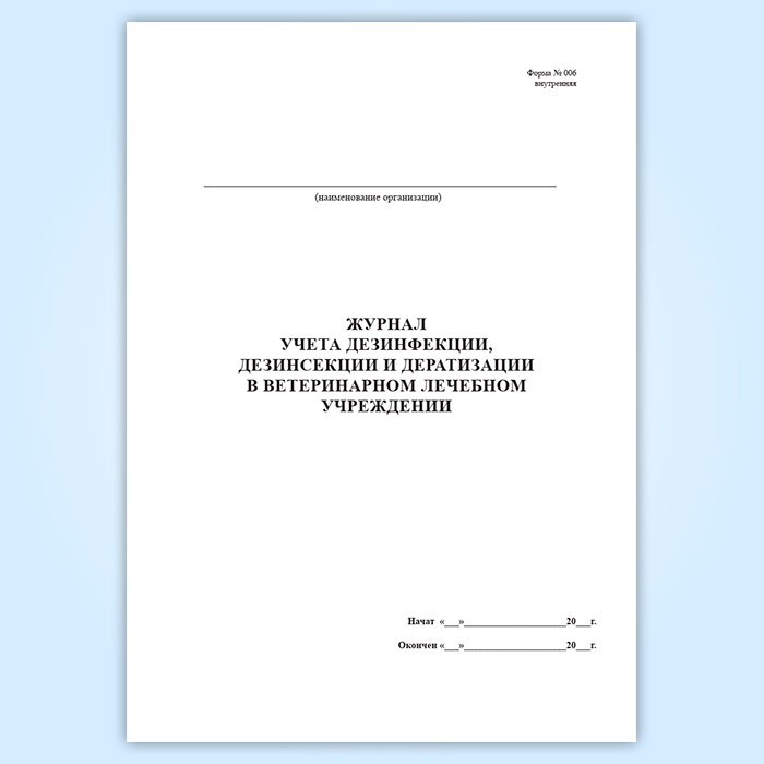 Журнал учета дезинфекции ветеринарного лечебного подразделения (форма № 006 вн.) в Кызыле купить