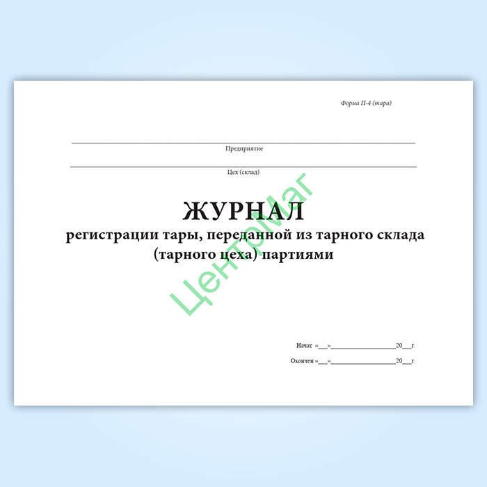 Журнал регистрации тары, переданной из тарного склада (тарного цеха) партиями (форма № П-4 тара) в Кызыле купить