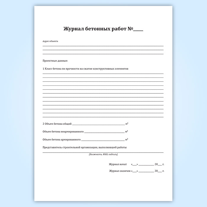 Журнал бетонных работ (форма 12.1, СП 392.1325800.2018) в Кызыле купить