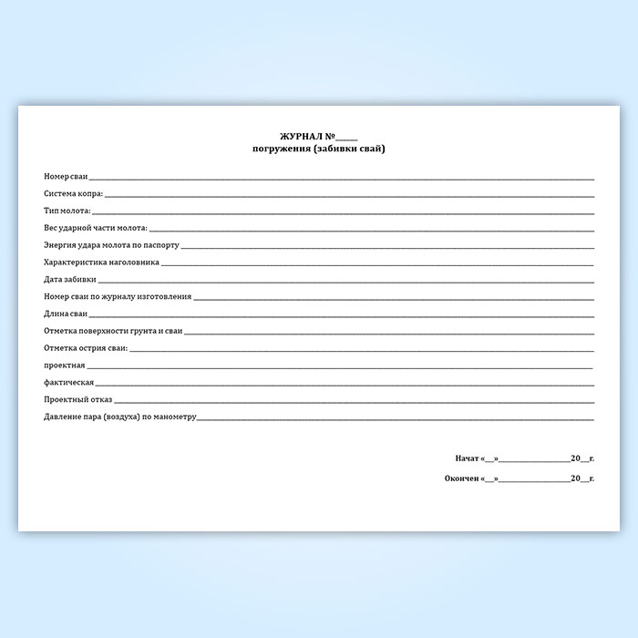 Журнал погружения (забивки свай) (форма 4.1) в Кызыле купить
