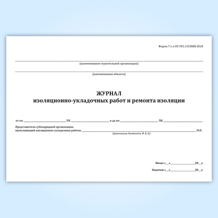 Журнал изоляционно-укладочных работ и ремонта изоляции (форма 7.1) в Кызыле купить