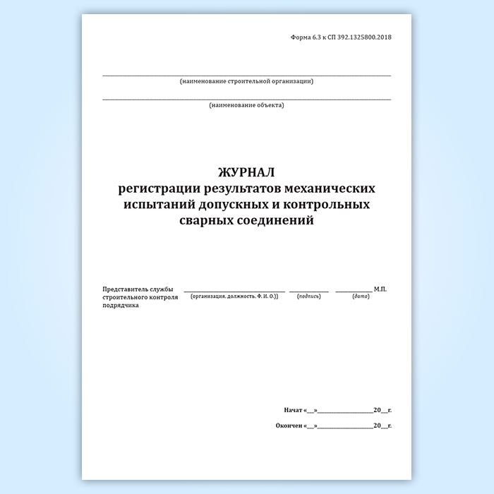 Журнал регистрации результатов механических испытаний допускных и контрольных сварных соединений (форма 6.3) в Кызыле купить