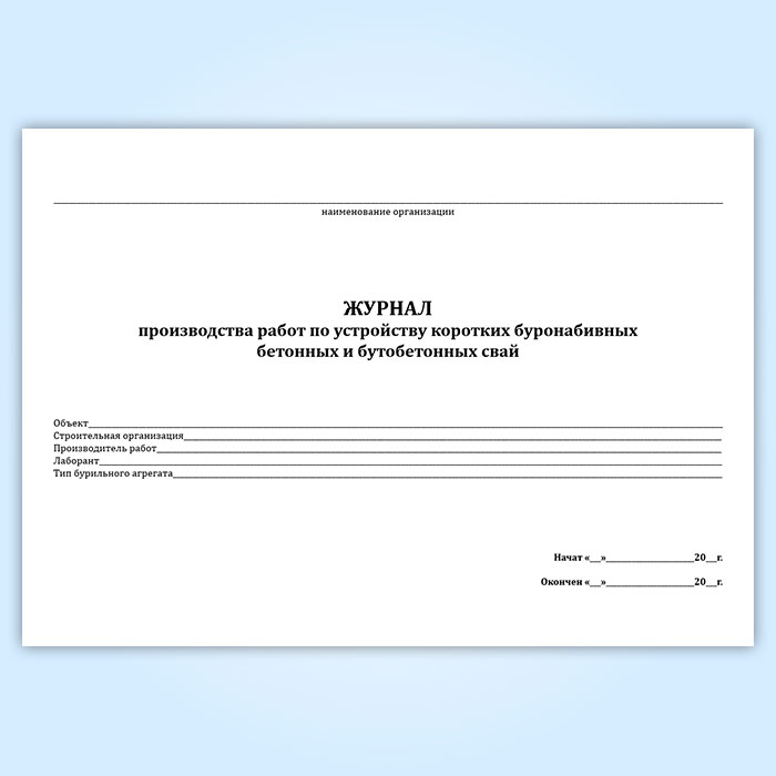 Журнал производства работ по устройству коротких буронабивных бетонных и бутобетонных свай в Кызыле купить
