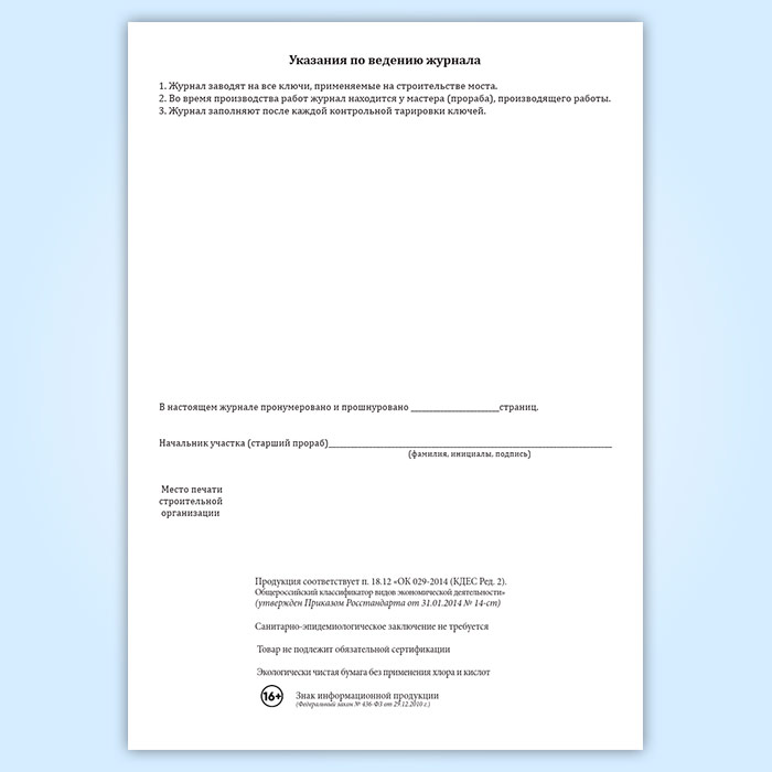 Вы получаете печатную продукцию прошнурованной и c местом для вашей печати в соответствии с действующими нормативными документами: