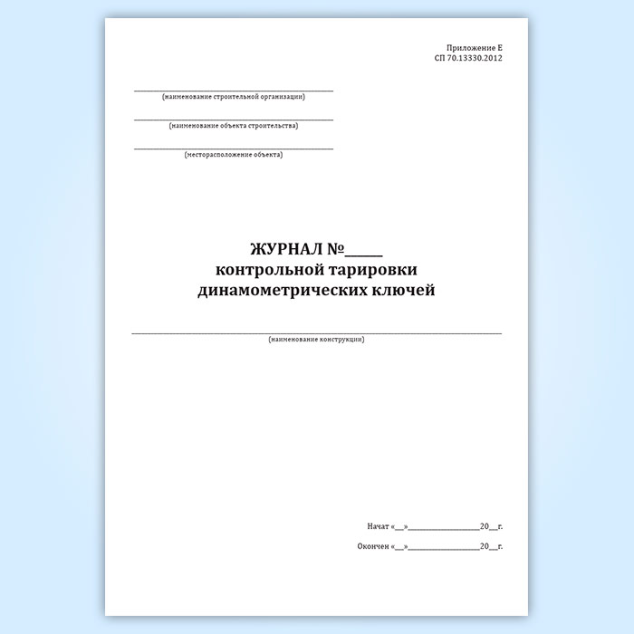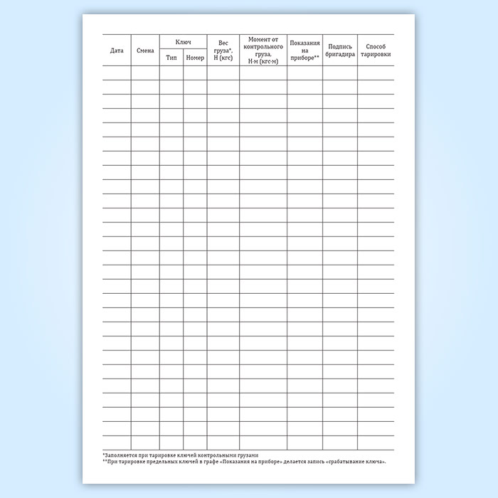 Журнал контрольной тарировки динамометрических ключей в Кызыле купить