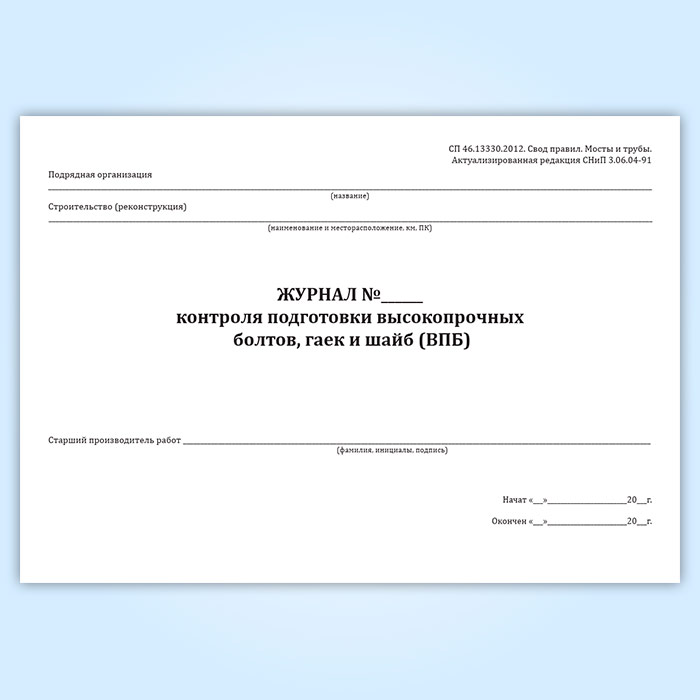 Журнал контроля подготовки высокопрочных болтов, гаек и шайб в Кызыле купить