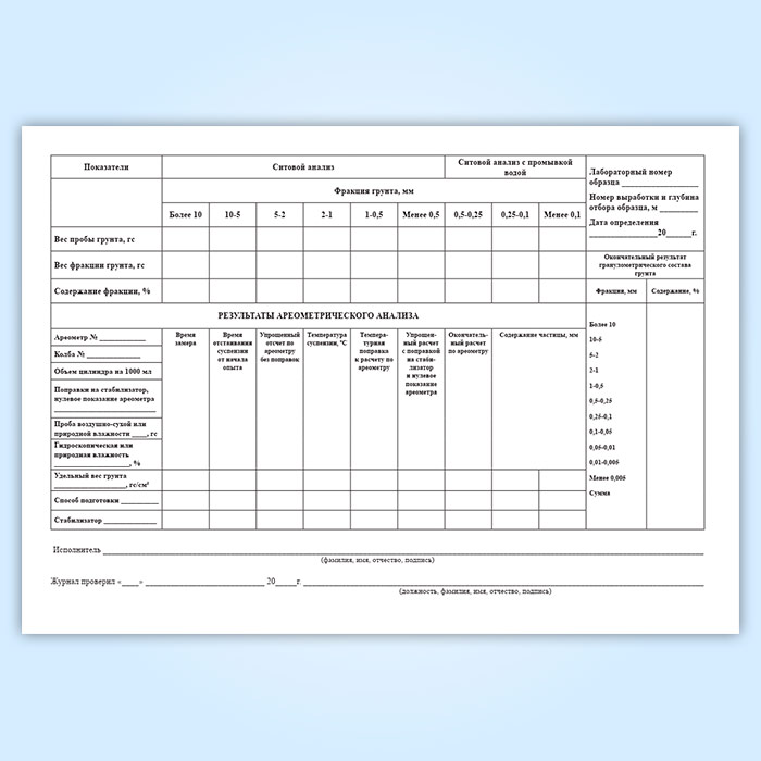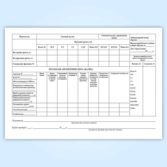 Журнал лабораторного определения гранулометрического (зернового) состава грунта в Кызыле купить