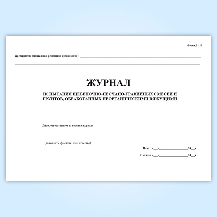 Журнал испытания щебеночно-песчано-гравийных смесей и грунтов, обработанных неорганическими вяжущими в Кызыле купить