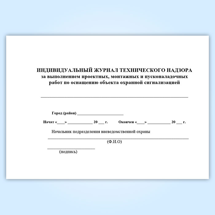 Индивидуальный журнал технического надзора за выполнением проектных, монтажных и пусконаладочных работ по оснащению объекта охранной сигнализацией в Кызыле купить