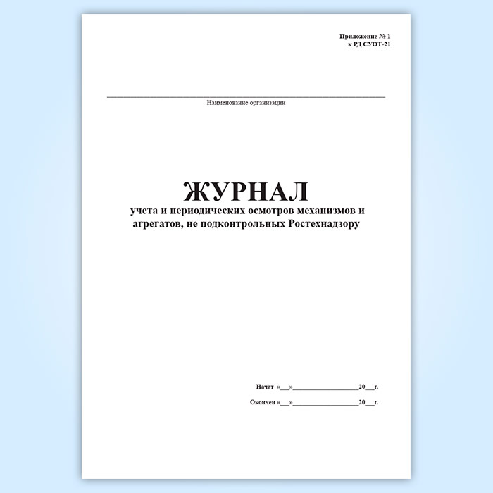 Журнал учета и периодических осмотров механизмов и агрегатов, не подконтрольных Ростехнадзору в Кызыле купить