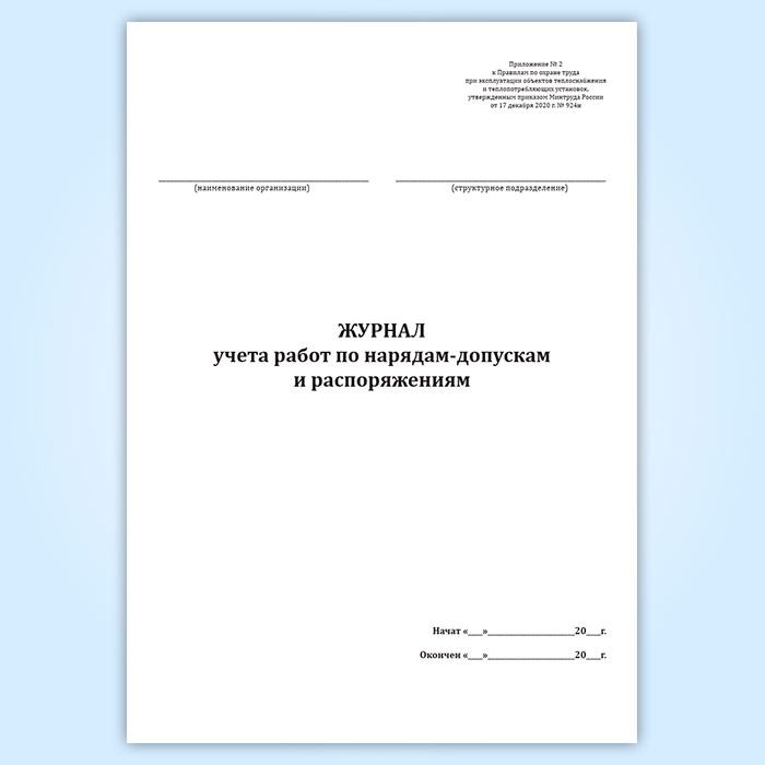 Журнал учета работ по нарядам-допускам и распоряжениям (для объектов теплоснабжения и теплопотребляющих установок) в Кызыле купить