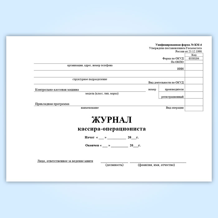 Журнал кассира-операциониста, горизонтальный (форма № КМ-4) в Кызыле купить