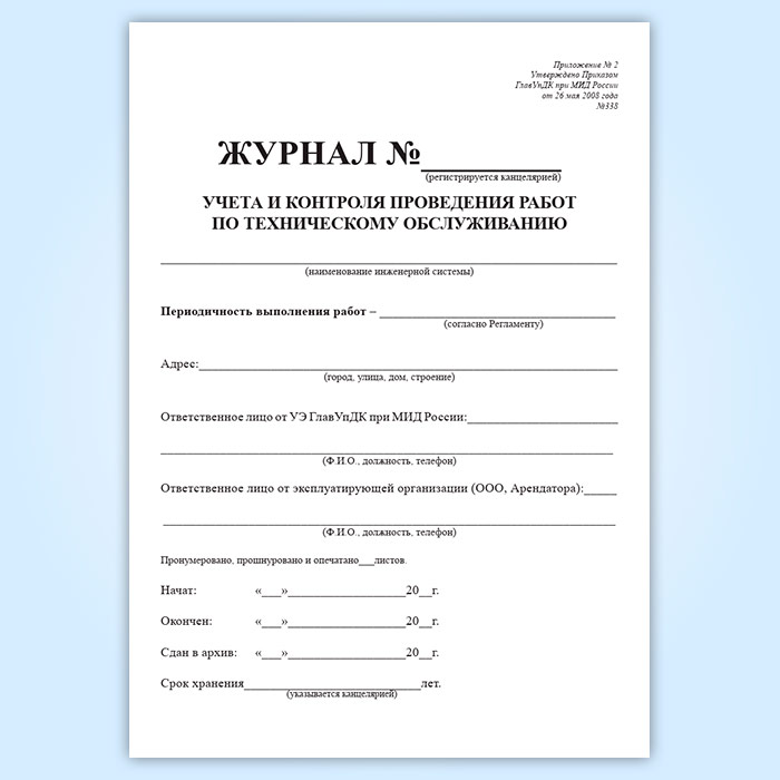 Журнал учета и контроля проведения работ по техническому обслуживанию в Кызыле купить
