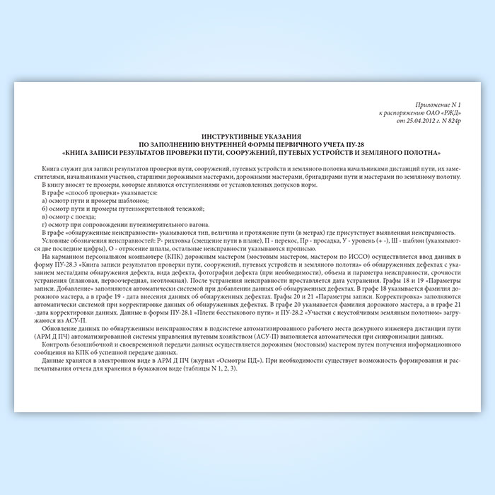 Книга записи результатов проверки пути, сооружений, путевых устройств и земляного полотна (форма ПУ-28) в Кызыле купить