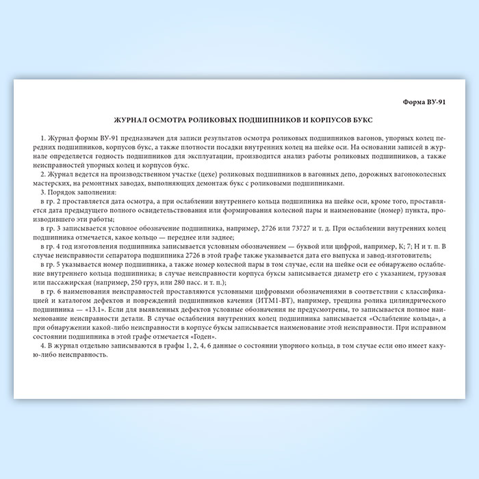 Журнал осмотра роликовых подшипников и корпусов букс (форма ВУ-91) в Кызыле купить