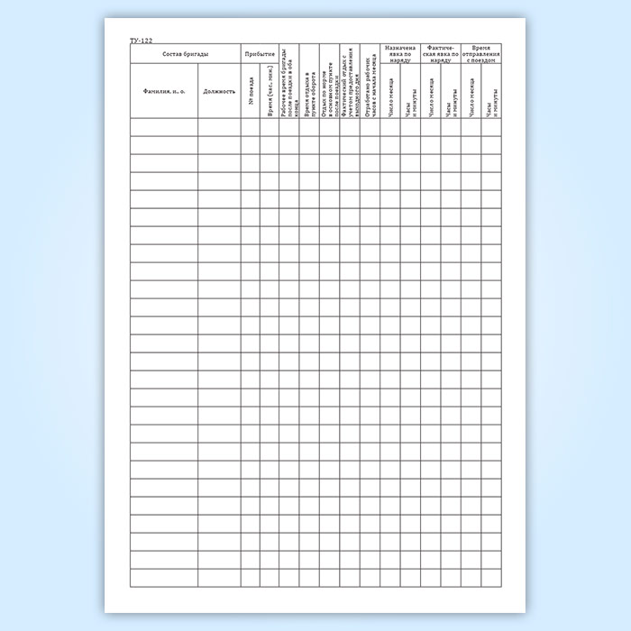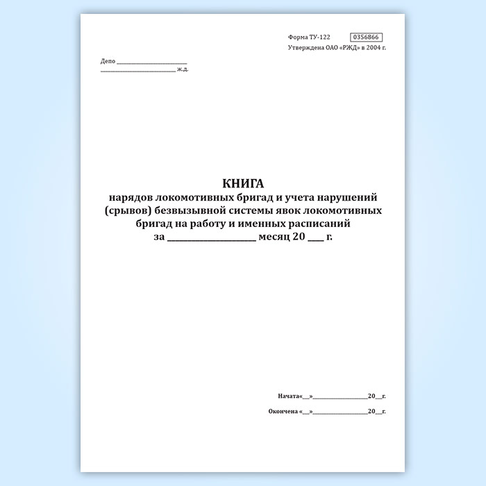 Книга нарядов локомотивных бригад и учета нарушений (срывов) безвызывной системы явок локомотивных бригад на работу и именных расписаний (форма ТУ-122) в Кызыле купить
