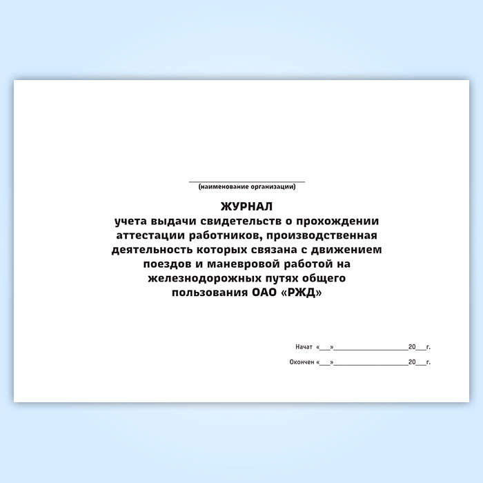 Журнал учета выдачи свидетельств о прохождении аттестации работников, производственная деятельность которых связана с движением поездов и маневровой работой на железнодорожных путях общего пользования ОАО «РЖД» в Кызыле купить
