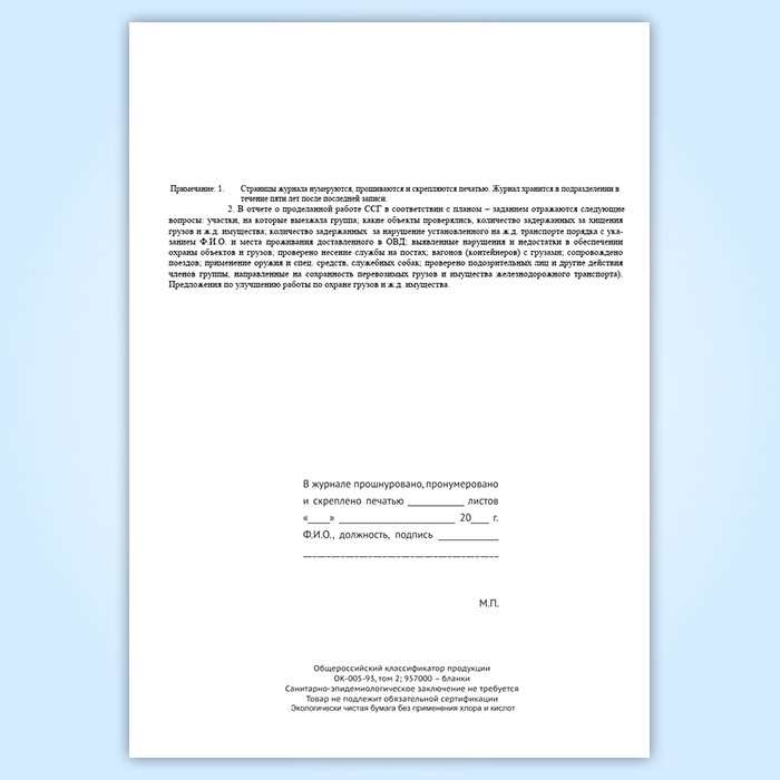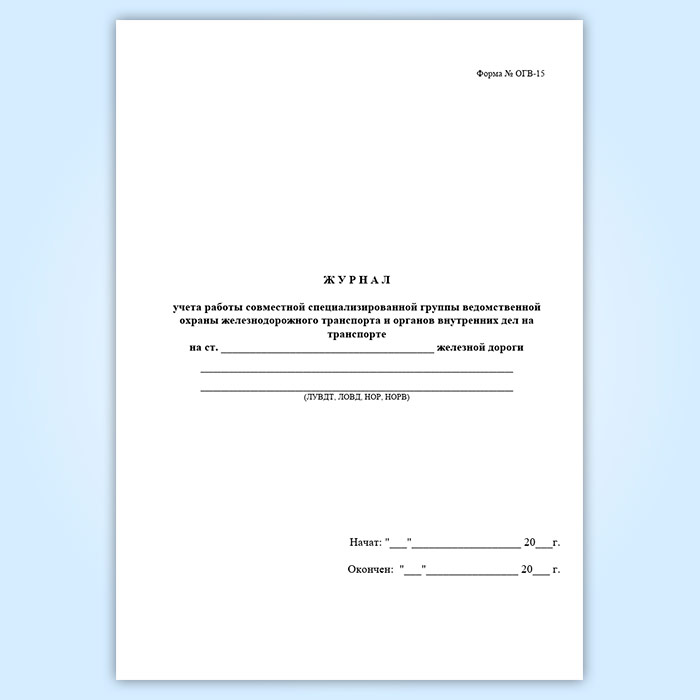 Журнал учета работы совместной специализированной группы ведомственной охраны железнодорожного транспорта и органов внутренних дел на транспорте (форма № ОГВ-15) в Кызыле купить