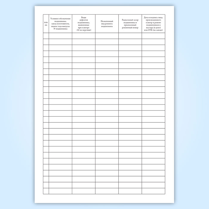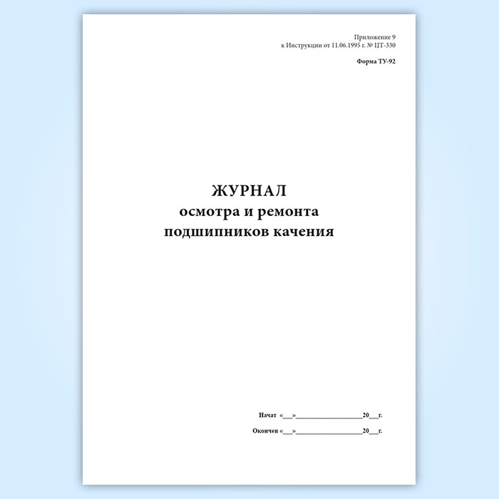 Журнал осмотра и ремонта подшипников качения (форма ТУ-92) в Кызыле купить
