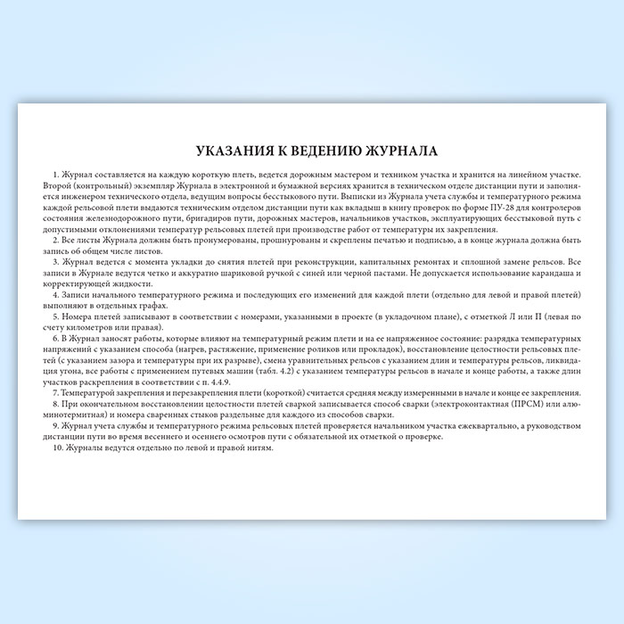 Журнал учета службы и температурного режима рельсовых плетей в Кызыле купить