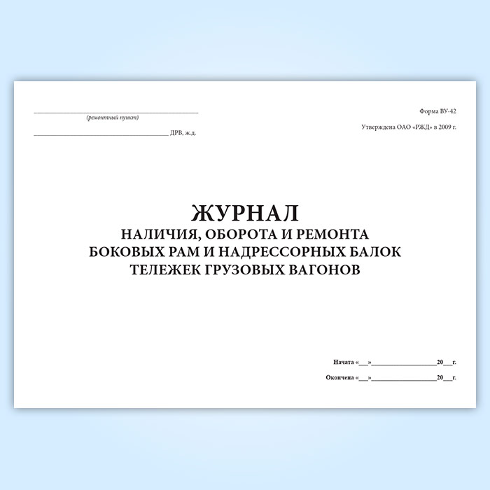 Журнал учета наличия, оборот и ремонт боковых рам и надрессорных балок тележек грузовых вагонов (форма ВУ-42) в Кызыле купить