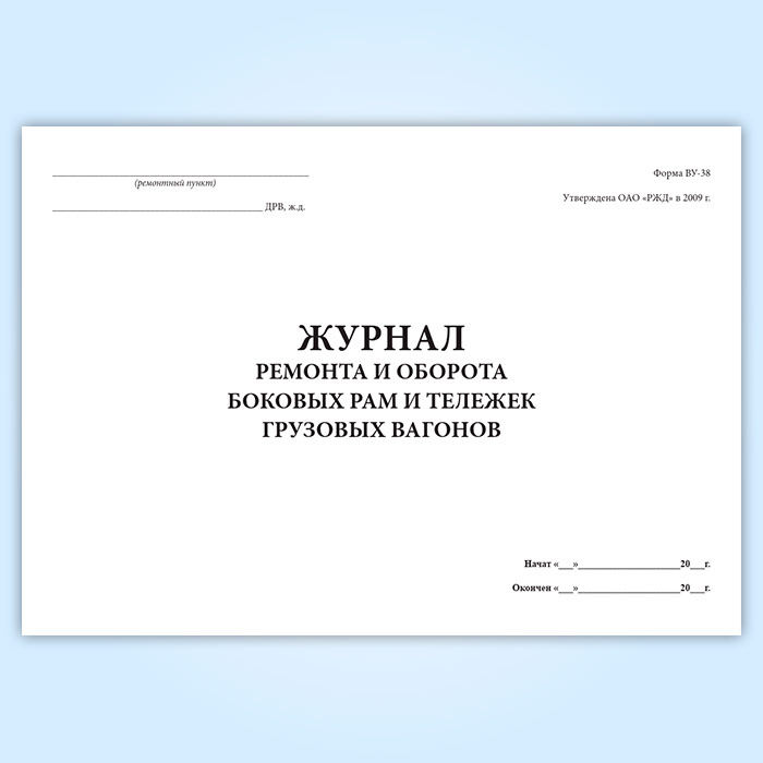 Журнал ремонта и оборота боковых рам и тележек грузовых вагонов (форма ВУ-38) в Кызыле купить