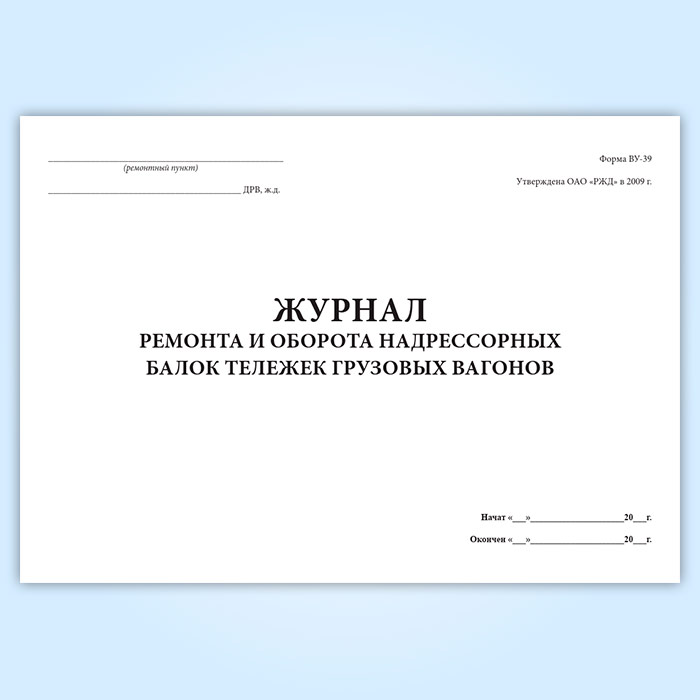 Журнал ремонта и оборота надрессорных балок тележек грузовых вагонов (форма ВУ-39) в Кызыле купить
