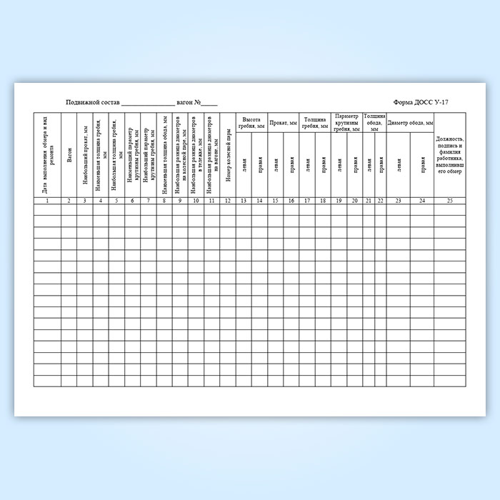 Книга состояния колесных пар скоростных/высокоскоростных электропоездов (форма ДОСС У-17) в Кызыле купить