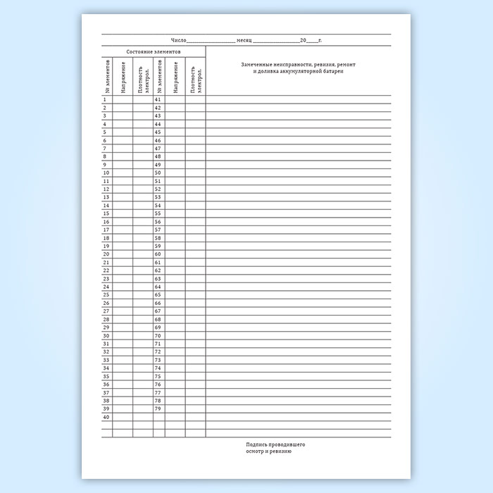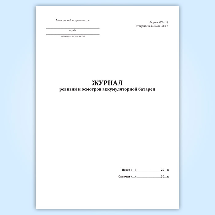 Журнал ревизий и осмотров аккумуляторной батареи (форма МУэ-18) в Кызыле купить