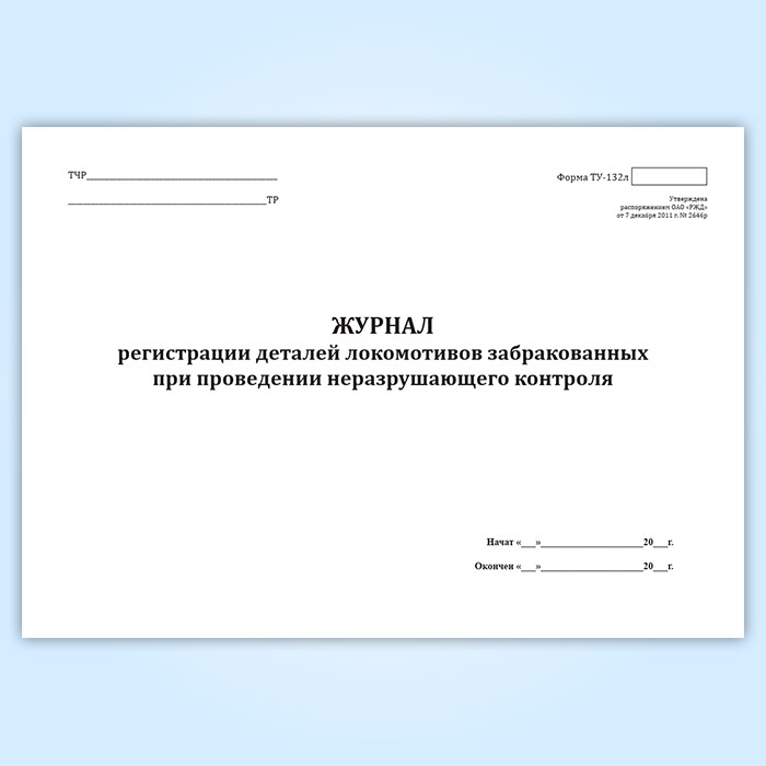 Журнал регистрации деталей локомотивов, забракованных при проведении неразрушающего контроля (форма ТУ-132л) в Кызыле купить