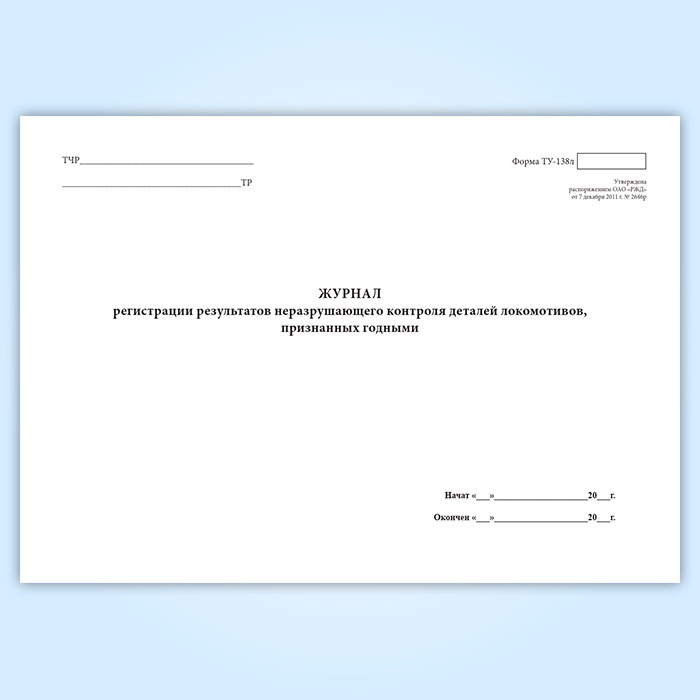 Журнал регистрации результатов неразрушающего контроля деталей локомотивов, признанных годными (форма ТУ-138л) в Кызыле купить