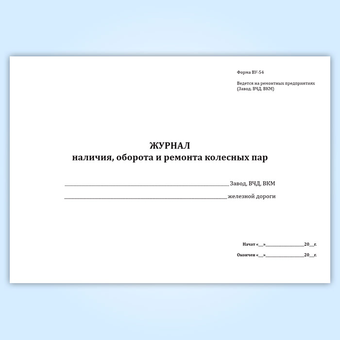 Журнал учета наличия, оборота и ремонта колесных пар (форма ВУ-54) в Кызыле купить