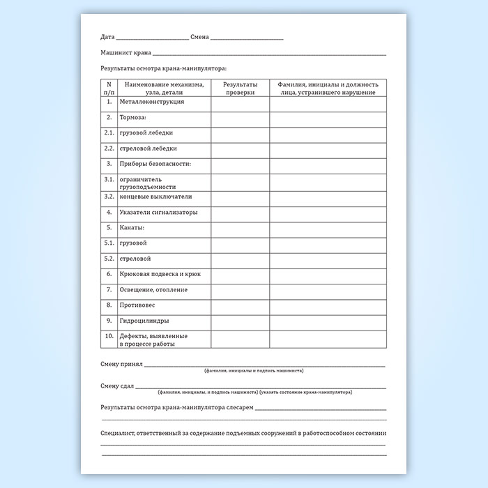 Вахтенный журнал машиниста грузоподъемного крана-манипулятора в Кызыле купить
