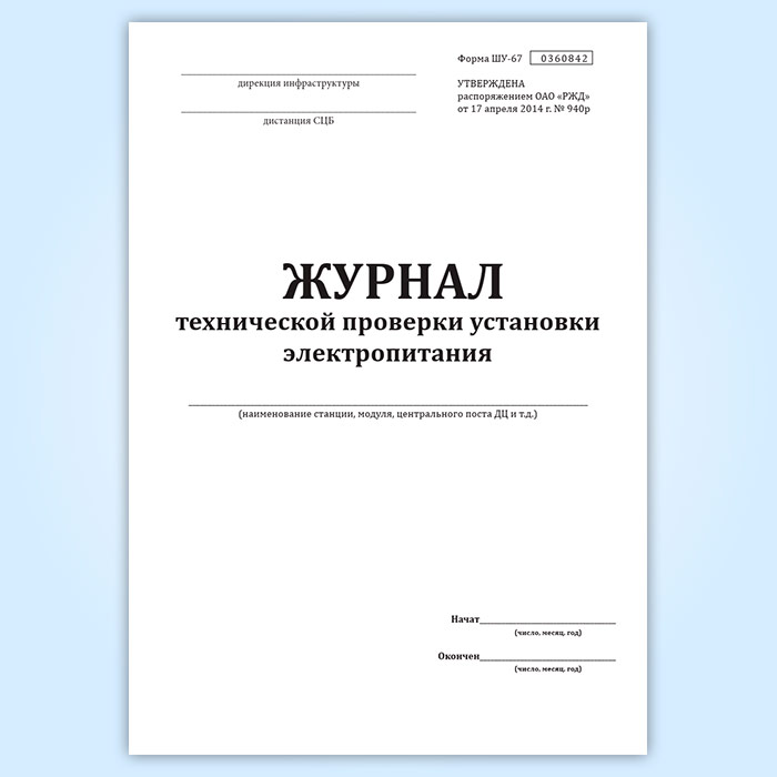 Журнал технической проверки установки электропитания (форма ШУ-67) в Кызыле купить