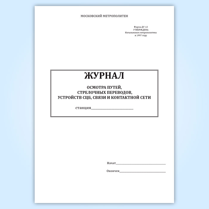 Журнал осмотра путей, стрелочных переводов, устройств СЦБ, связи и контактной сети (форма ДУ-12) в Кызыле купить
